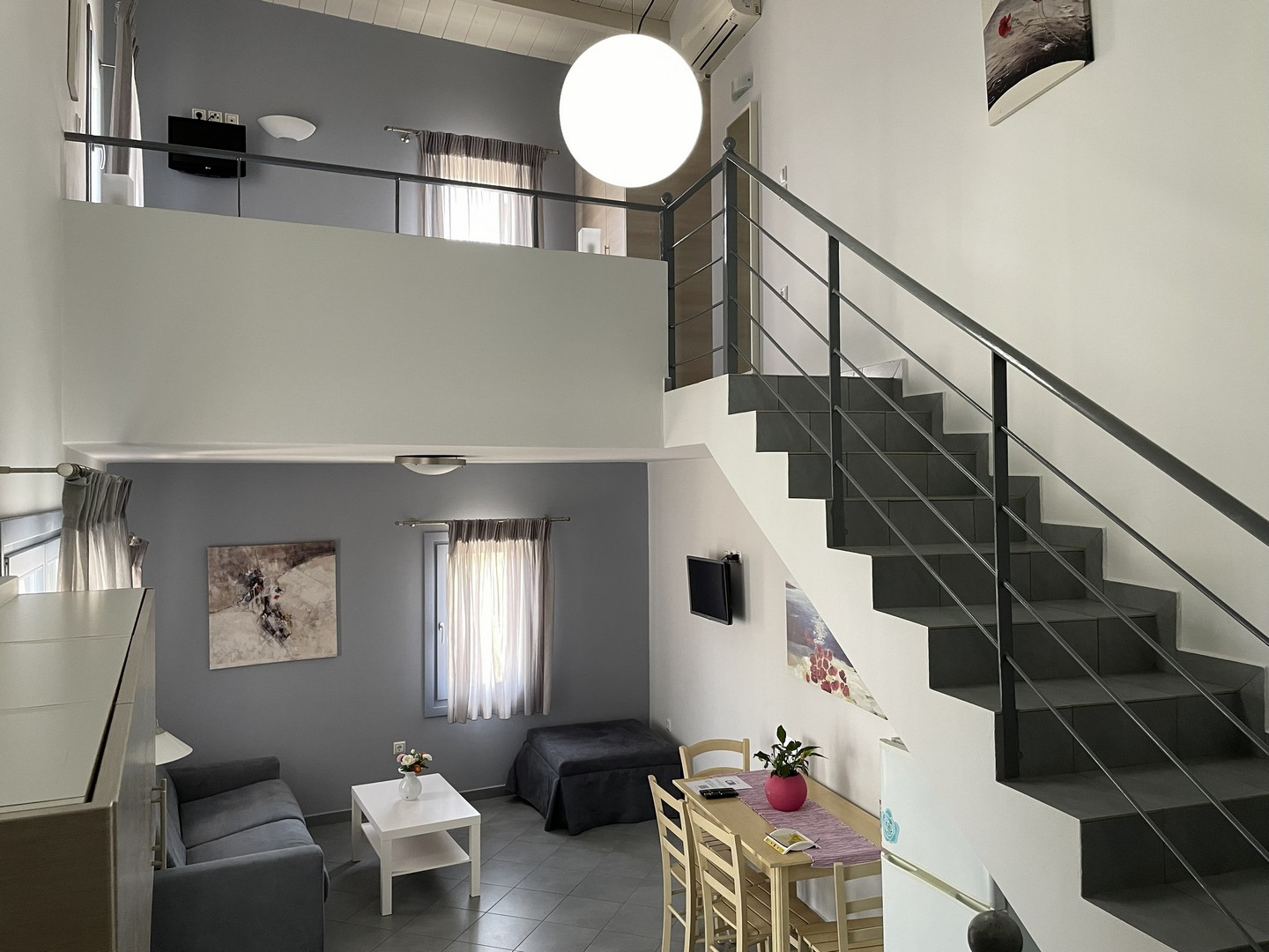 1 Cama Doble Grande, 2 sofás-cama, Toallas, Lino, Armario, Balcón, Muebles de exterior, Zona de comedor al aire libre, Vistas al mar, Vistas al jardín, Vistas a la montaña, Conexión Wi-Fi gratuita, Aire acondicionado, Zona de comedor, Mesa de comedor, Zona de estar, Caja fuerte, TV LCD, Canales vía satélite, Servicio diario de camarera de pisos, Zona de cocina, Frigorífico, Horno, Fogones, Utensilios de cocina, Hervidor eléctrico, Tetera/Cafetera, Parrilla, Cuarto de baño con ducha, Artículos de aseo gratuitos, Secador de pelo, Plancha para ropa, Productos de limpieza, loft de secado, Insonorización, Entrada privada, no se puede fumar , Cuna (bajo petición), Pisos superiores accesibles solo por escaleras